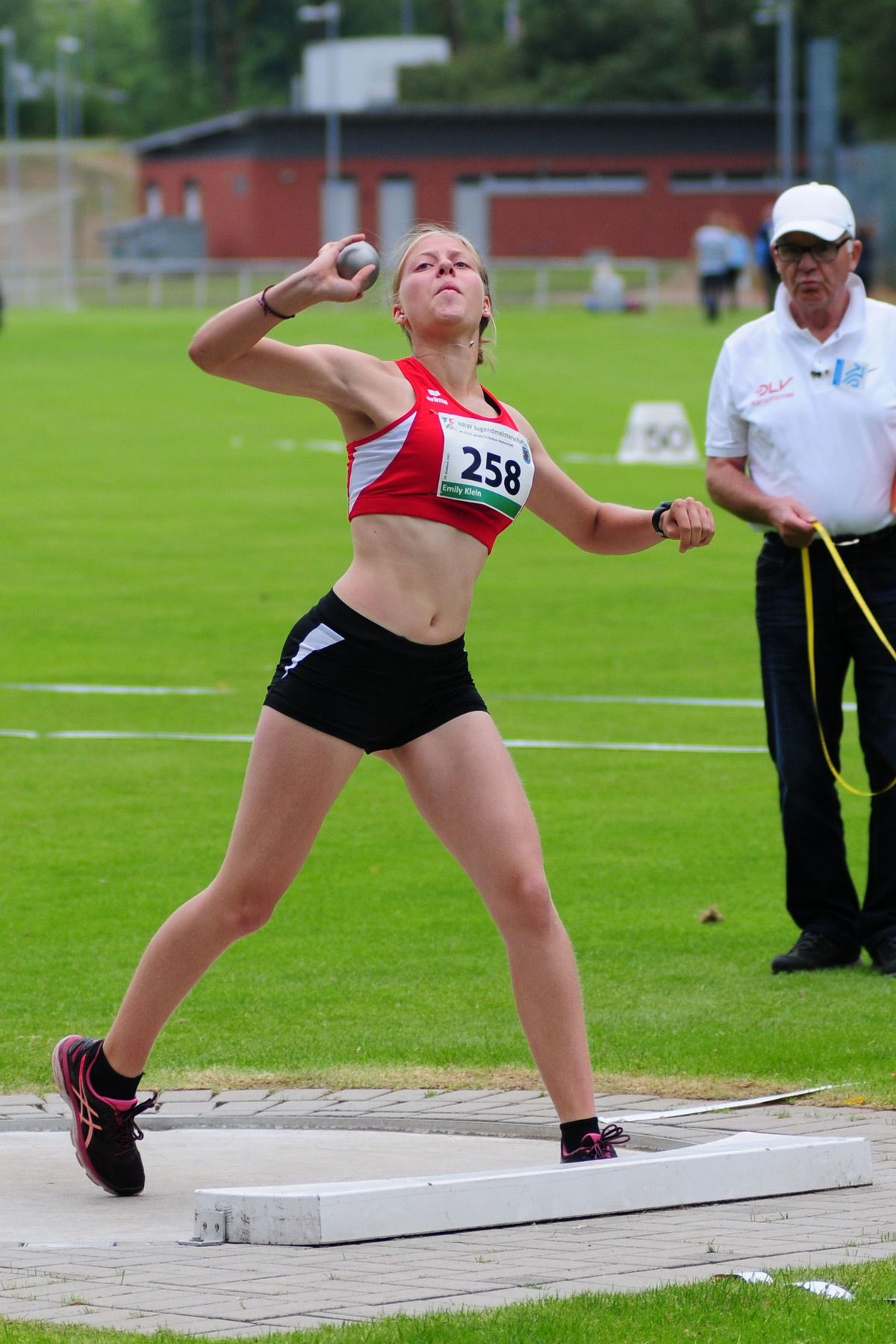 Im Diskuswurf der Altersklasse W15 war Emily nicht zu schlagen und siegte mit 20,55 Meter, im Speerwurf wurde sie Zweite mit 25,14 Meter und die Bronzemedaille errang sie im Kugelstoßen mit 9,98 Meter.