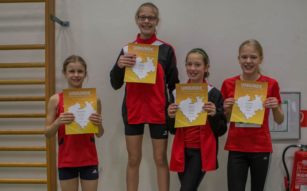 Weitere tolle Leistungen erzielten die Mädchen der Altersklasse W12. Lena Hoffmann und Malina Halfes siegten zeitgleich mit Sportlerinnen aus Witten und Gevelsberg im 30 m Sprint mit 5,3 sek. Für Emily Klein, Sophie Dier (je Platz 5), Edona Krasniqi (7.) und Christiane Berger (8.) stoppten die Kampfrichter 5,4 sek. Im 35 m-Hürdensprint gab es für Emily Klein und Christiane Berger einen Doppelsieg (6,9 sek.), Malina Halfes und Sophie Dier kamen kaum später ins Ziel und gewannen in 7,0 sek Bronze. Emily Klein wurde noch Zweite im Hochsprung (1,28 m) vor Lena Hoffmann und Christiane Berger (je 1,20 m). Im Kugelstoßen gab es Silber für Lena Hoffmann (6,22 m) vor Emily Klein (5,94 m) und Christiane Berger (5,16 m).