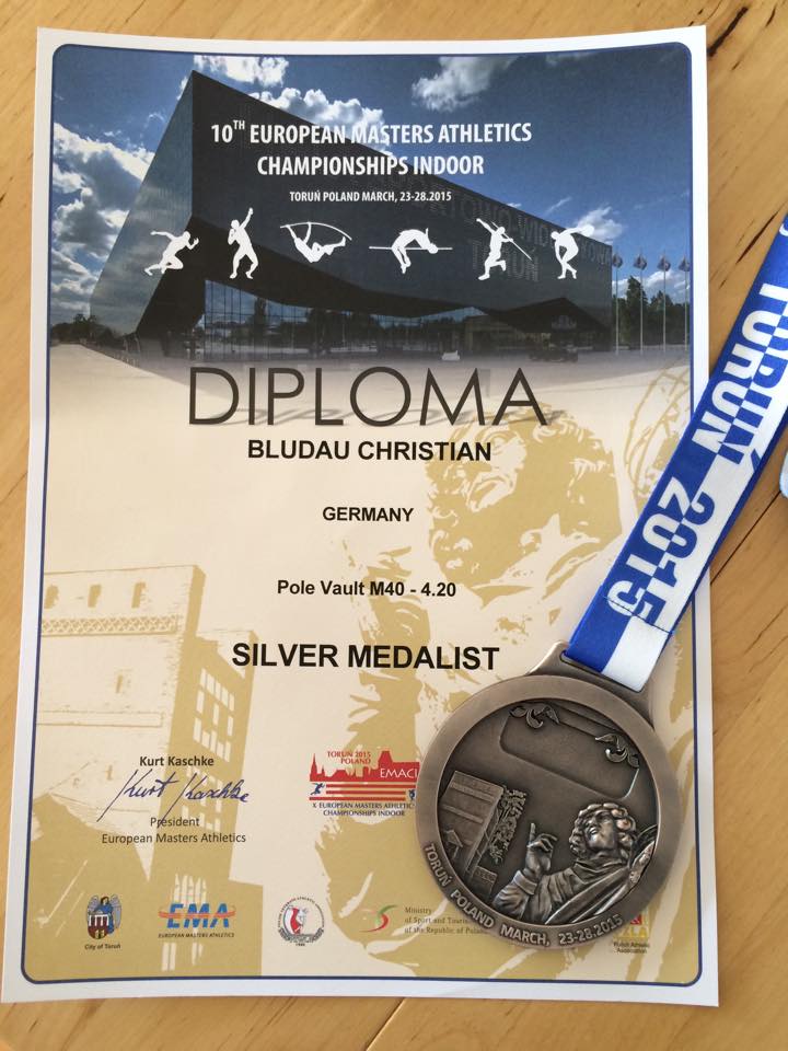 In Top-Form präsentierte sich Christian Bludau bei den Europäischen Senioren-Hallenmeisterschaften, die im polnischen Torun ausgetragen wurden. Mit 4,20 m setzte sich der bald 45-jährige Senior gegen die übrige Konkurrenz durch und sprang zu Silber. Er musste sich nur dem favorisierten Athleten Jonas Asplund aus Schweden beugen, der 4,60 meisterte.