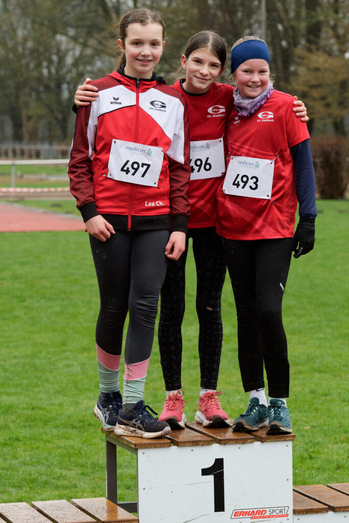 In der Mannschaftswertung W13/W12 sicherte sich der VfL Gladbeck 1921 ebenfalls den Sieg: Aleyna Max, Lea Chaymowski und Hanna Wessenbom liefen gemeinsam zu einer Gesamtzeit von 25:31 Minuten.